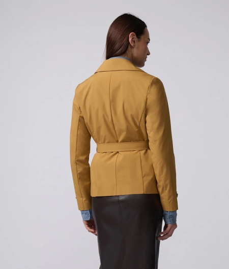 Il Summer Short Lady Trench è un trench da donna monospalla che unisce un'estetica raffinata alle prestazioni tecniche. Realizzato in softshell ultra leggero a doppia elasticità in 4 direzioni, garantisce flessibilità e un'eccellente libertà di movimento per il massimo comfort nella stagione calda. Il tessuto è dotato di una membrana interna con micro-jersey a contatto con la pelle che riduce l'adesione e migliora la traspirabilità. Con una traspirabilità di 5000 g/m² e una resistenza all'acqua di 5000 mm, offre una protezione affidabile dal vento e dalla pioggia leggera. La silhouette è valorizzata dalla cintura in vita, dai dettagli incollati e nastrati e dai bottoni in metallo personalizzati. La doppia toppa con chiusura magnetica aggiunge un tocco funzionale e distintivo, mantenendo un look pulito e moderno.