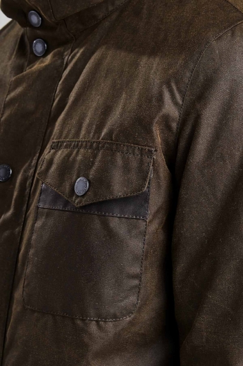 La Barbour International Kevlar Waxed Cotton Jacket è una giacca di ispirazione motociclistica realizzata con un esterno in cotone cerato molto resistente, una confortevole fodera trapuntata e un cappuccio fisso foderato in pile. Due tasche inferiori sono abbinate a un'ulteriore tasca applicata sul petto per custodire gli oggetti essenziali. Il label di Barbour rifinisce il capo.