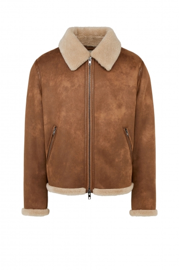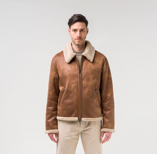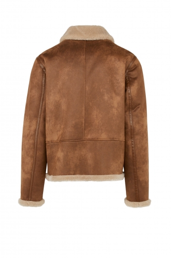 Giacca simil montone con collo in ecopelliccia, morbida e calda. Il regular fit garantisce libertà di movimento e una silhouette confortevole.