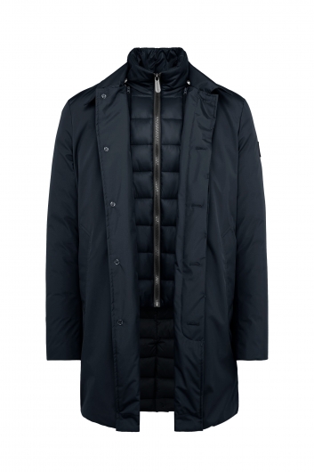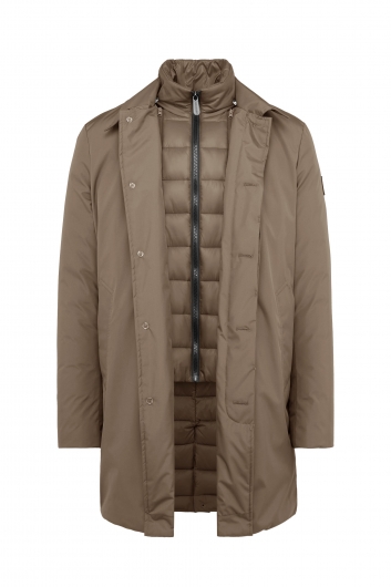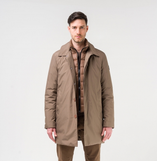 Questo trench imbottito con gilet interno staccabile unisce eleganza e funzionalità per la vita urbana. Il tessuto esterno in poliestere, idrorepellente e antivento, protegge mantenendo il capo leggero e confortevole. Il davantino removibile aggiunge versatilità, consentendo di adattare il capo alle diverse esigenze. La chiusura con bottoni classici e zip VISLON garantisce praticità e durata.