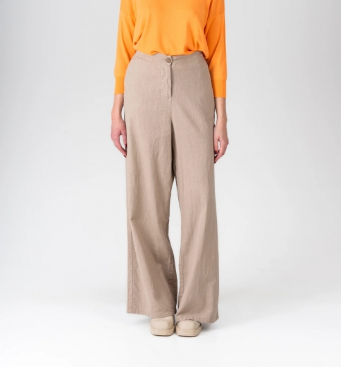 Pantaloni palazzo con vita elasticizzata, un capo elegante e comodo, perfetto per chi cerca uno stile fluido e sofisticato.Realizzati in: