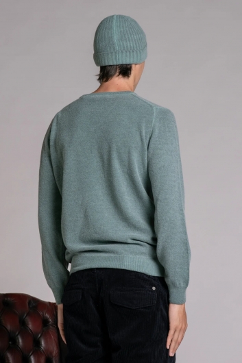 Maglione in misto lana dal taglio essenziale con scollo girocollo. Il trattamento cold dyed conferisce al capo un effetto vissuto e sfumato, con leggere irregolarità cromatiche che lo rendono unico. La lavorazione in maglia compatta garantisce calore e comfort, mentre la vestibilità regolare lo rende facile da abbinare sia a look casual che più ricercati.