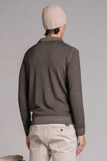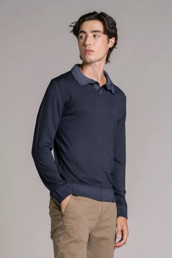 Polo modello skipper realizzata in fine tessuto di lana merino, leggera e confortevole a contatto con la pelle. Il capo è caratterizzato da uno speciale lavaggio acid wash, che conferisce un effetto vissuto e una sfumatura unica su ogni pezzo. Il collo aperto senza bottoni richiama l’estetica del classico skipper, donando un’eleganza rilassata e contemporanea. Un capo versatile che unisce la qualità del merino con un trattamento moderno e distintivo.