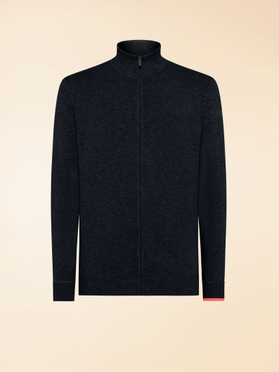 La felpa monocroma, realizzata in finissimo filato di cotone punto Milano, coniuga morbidezza e consistenza in un equilibrio di straordinaria qualità tattile. La chiusura frontale con zip a tutta lunghezza dona al modello un carattere contemporaneo e funzionale, mentre il colletto verticale, i polsini e il fondo rifiniti a costine elasticizzate ne definiscono il comfort del fit regolare con stile essenziale. Il bordino sul polso sinistro e il filetto posteriore sul fondo, entrambi in arancione fluo, illuminano la felpa esaltandone l’attitudine urban. Sulla manica sinistra, il logo nero a microiniezione firma il modello con una nota esclusiva.