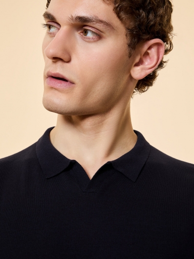 L’eleganza rilassata della maglieria premium trova una nuova interpretazione in questa polo a maniche lunghe che fa della semplicità il suo linguaggio più autentico. La finissima maglina, morbida al tatto, definisce un fit regolare che cade con precisione, preservando la sua allure sobria e impeccabile. Il colletto a polo presenta lo scollo a V privo di abbottonatura, mentre i dettagli distintivi del filetto arancione fluo sul fondo posteriore e il logo a microiniezione nero sulla manica sinistra completano il capo con note di stile esclusive.
