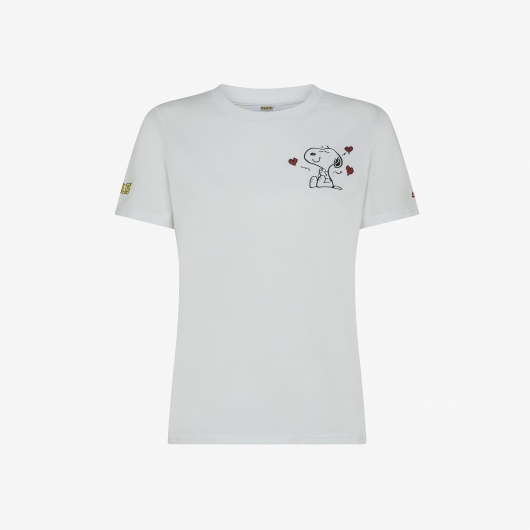 Sun68 T-shirt girocollo Peanuts in jersey di cotone bianco