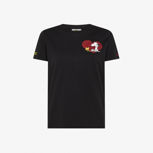 Sun68 T-shirt girocollo Peanuts in jersey di cotone nero