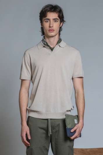 Il modello Skipper è l'essenza dello stile mediterraneo: l'assenza di bottoni regala uno scollo a "V" naturale e pulito, perfetto per chi cerca un’alternativa più chic alla classica t-shirt e più dinamica alla camicia. La vera rivoluzione è il filato cotone crepe che non aderisce alla pelle e garantisce una traspirabilità superiore. È il tessuto ideale per restare impeccabili e freschi anche nelle giornate più calde. Lo scollo aperto dona un'aria disinvolta e maschile, richiamando l'eleganza senza tempo delle icone del cinema degli anni '60.
