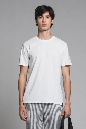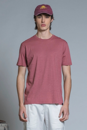 Questa T-shirt a manica corta, progettata per chi non scende a compromessi tra comfort e carattere. Realizzata in pregiato tessuto jersey slub, si distingue per la sua tipica texture fiammata che dona al capo un aspetto materico e naturale, piacevole al tatto e altamente traspirante. Grazie al lavaggio garment dyed (tinto in capo), ogni t-shirt presenta sfumature di colore esclusive e un’irresistibile morbidezza "vissuta" che migliora nel tempo.