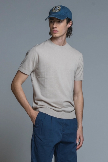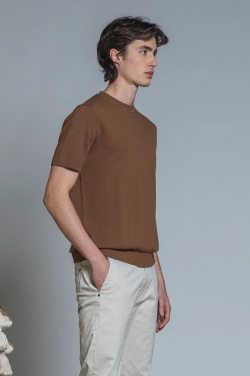 Maglione girocollo a manica corta dallo stile pulito e raffinato, realizzato in cotone crepe per una texture leggermente mossa, fresca e traspirante. La lavorazione tinto filo valorizza il colore, rendendolo intenso e uniforme nel tempo.Il design essenziale è completato da collo, fondo e fine maniche in costina, che garantiscono comfort, stabilità della forma e una vestibilità curata. Un capo versatile e leggero, perfetto per look casual ed eleganti.