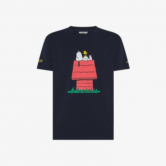 Sun68 T-shirt girocollo Peanuts in cotone con stampa navy blue