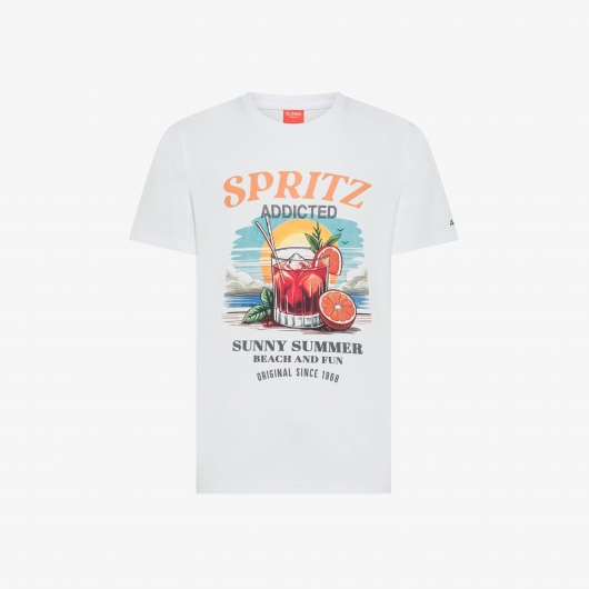 Sun68 T-shirt in jersey di cotone con stampa bianco/azzurro