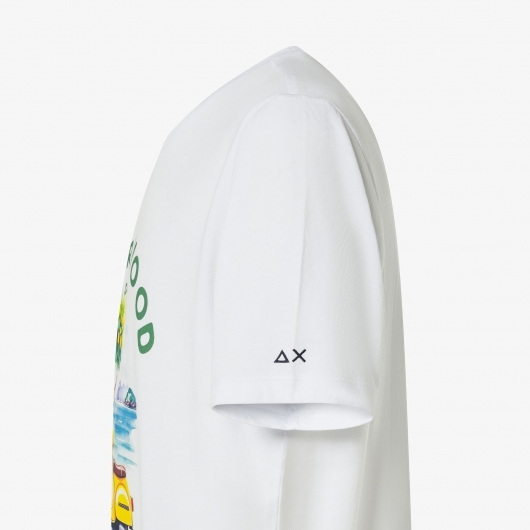 SUN68 T-shirt in jersey di cotone con stampa bianco/giallo